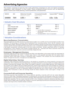 Learn how factors such as recurring revenue and concentration, employees and management structure, digital advertising and services, and corporate profit and consumer spending affect the value of the Advertising Agencies industry.